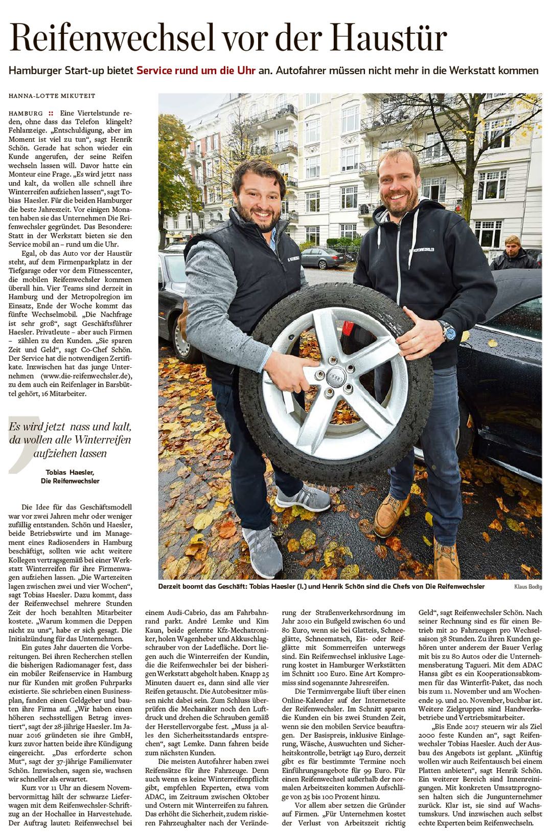 Die Reifenwechsler im Hamburger Abendblatt im November 2016
